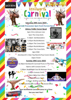Road Kenilworth at 3pm. Followed by a full line up of entertainment,